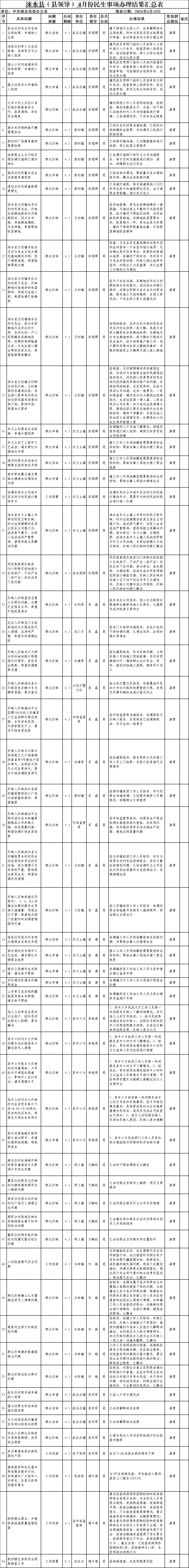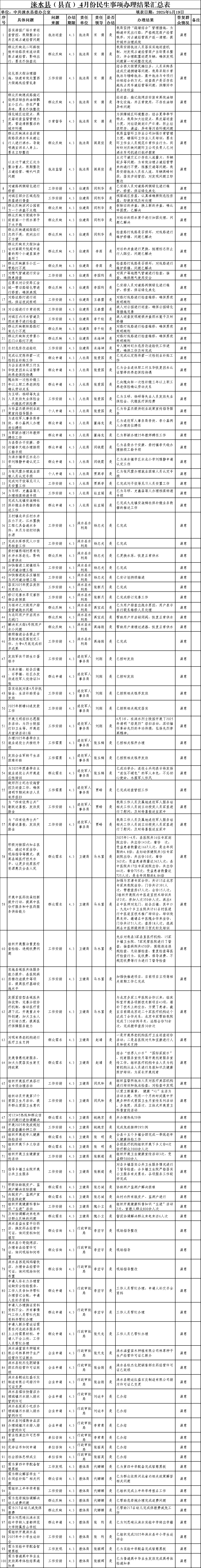涞水县2025年4月份民生事项办理结果